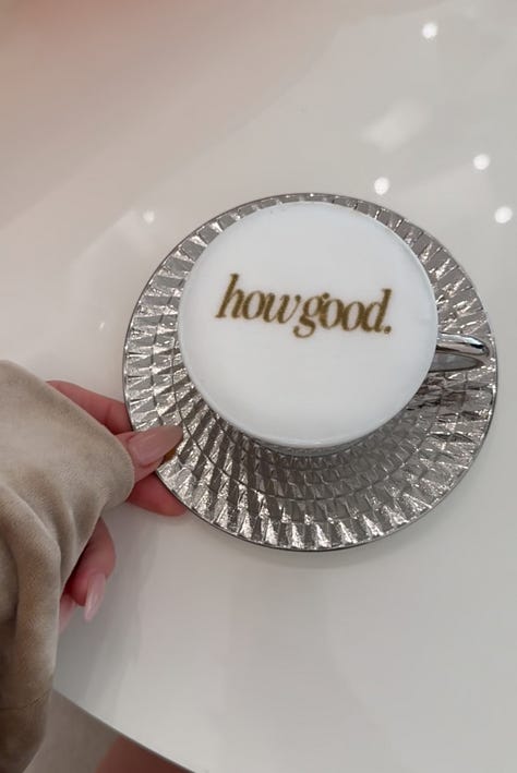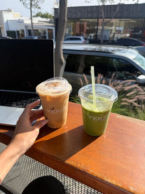 Reporting live from my favorite coffee shop in LA (Verve on Melrose), with an iced cold pistachio matcha in hand (& an iced pistachio latte for later). I wonder if the founder of Tache knows that I rank coffee shops exclusively based on weather or not they serve pistachio milk? (Tache barista blend, to be specific.) Someone let her know.